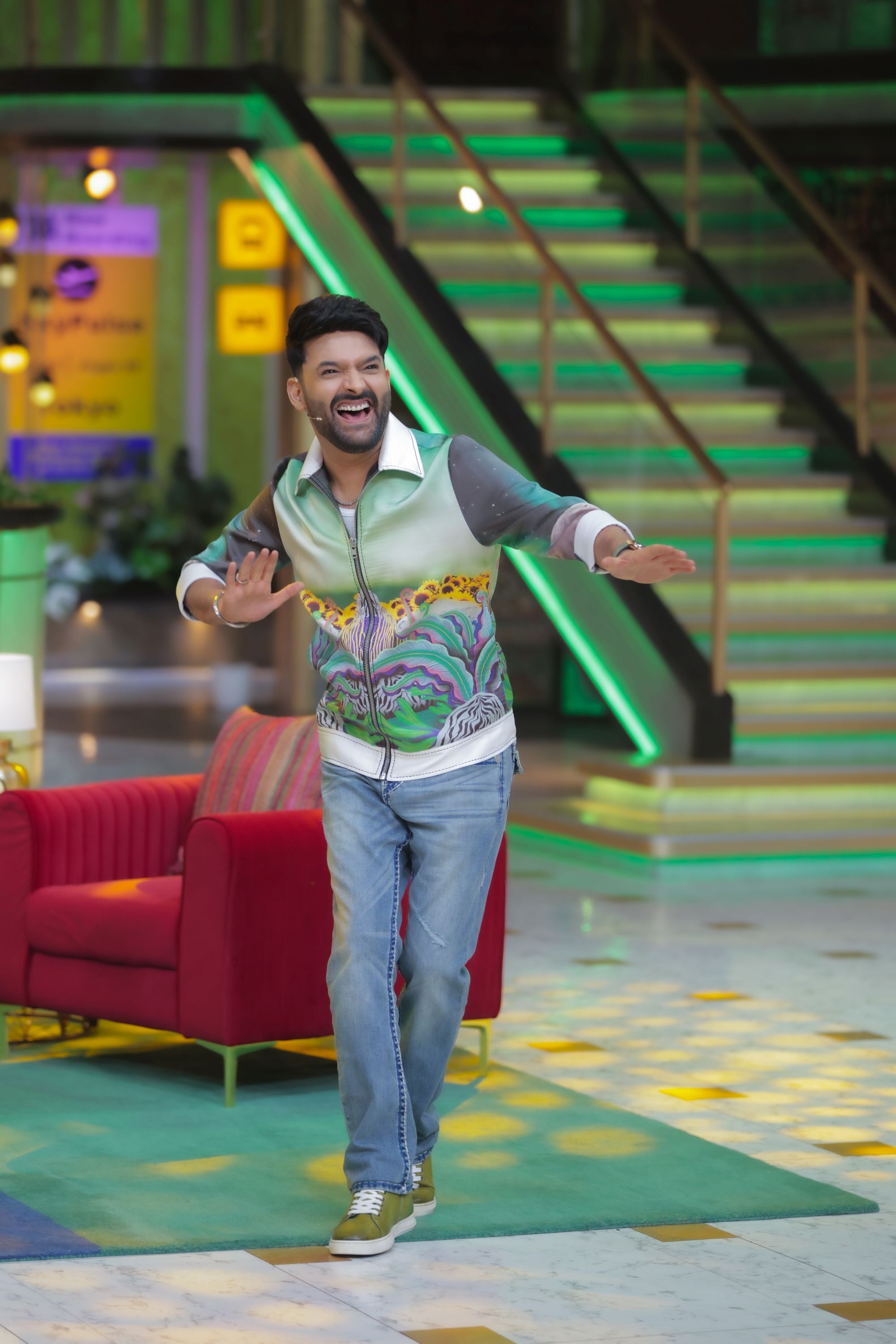 Exclusive Satin Digital Print Zip-Up Jacket Worn by Kapil Sharma