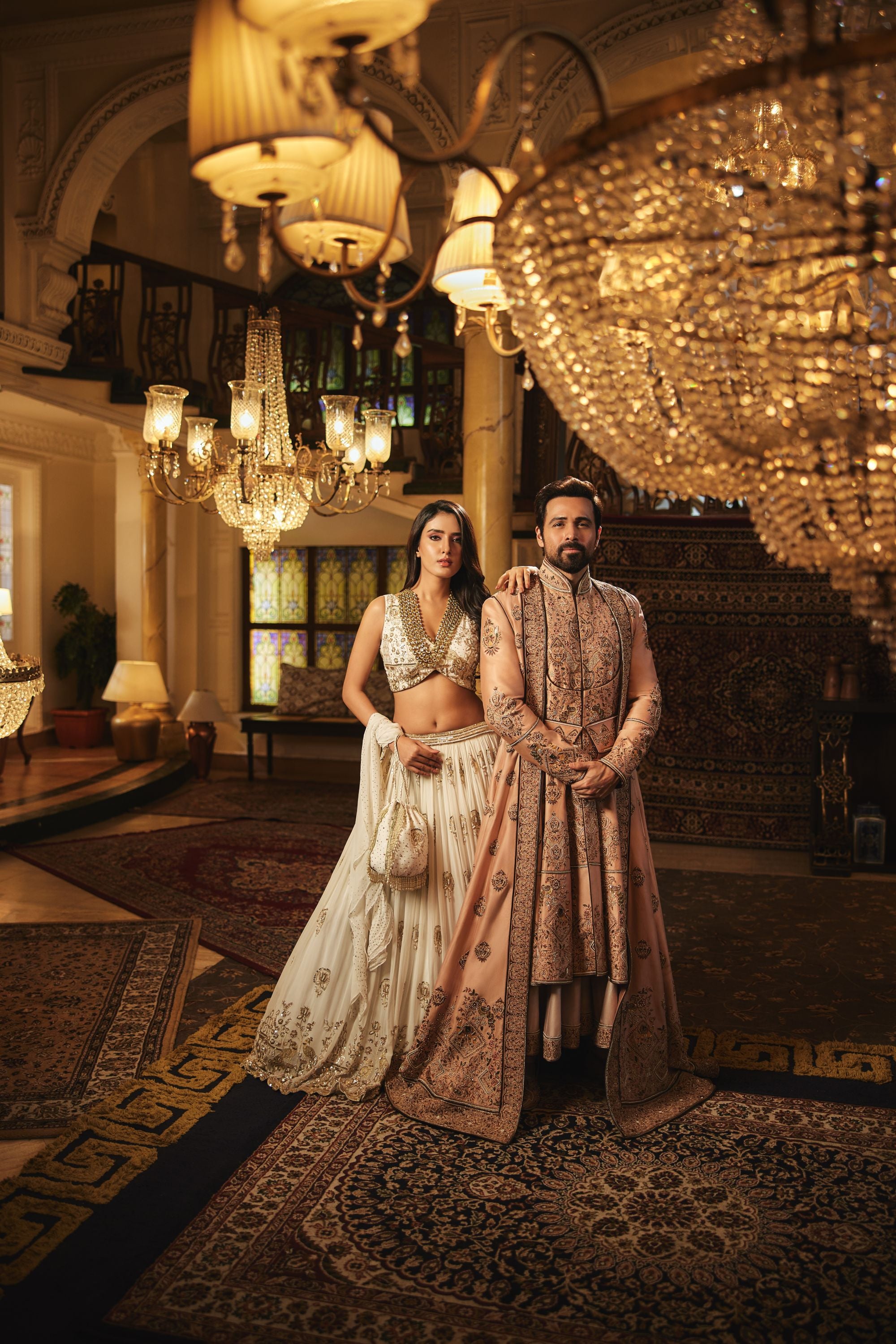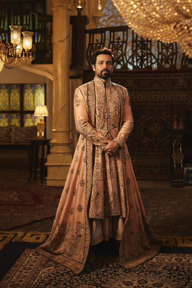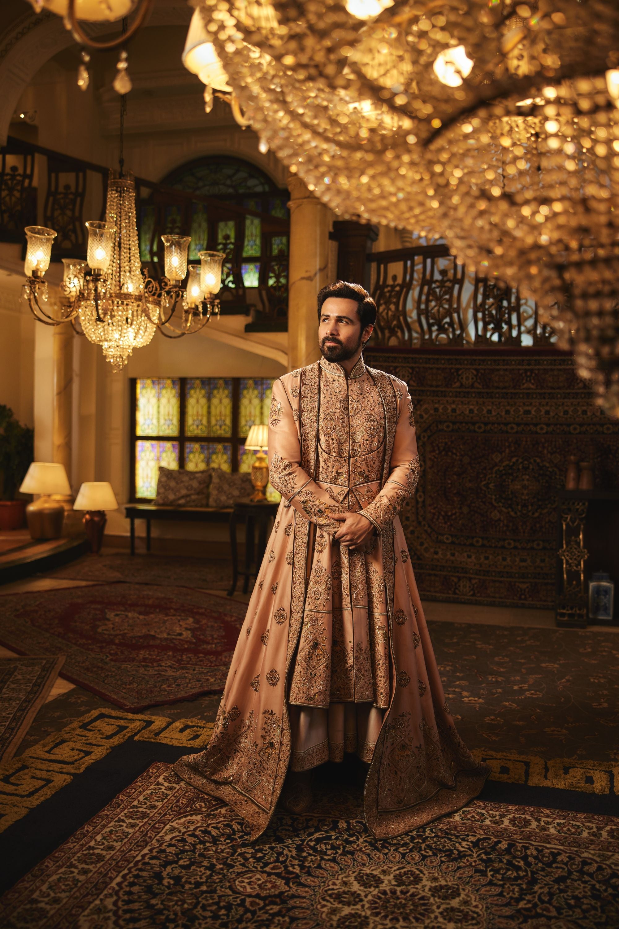 Regal Peach Anarkali Sherwani—royally carried by Emraan Hashmi