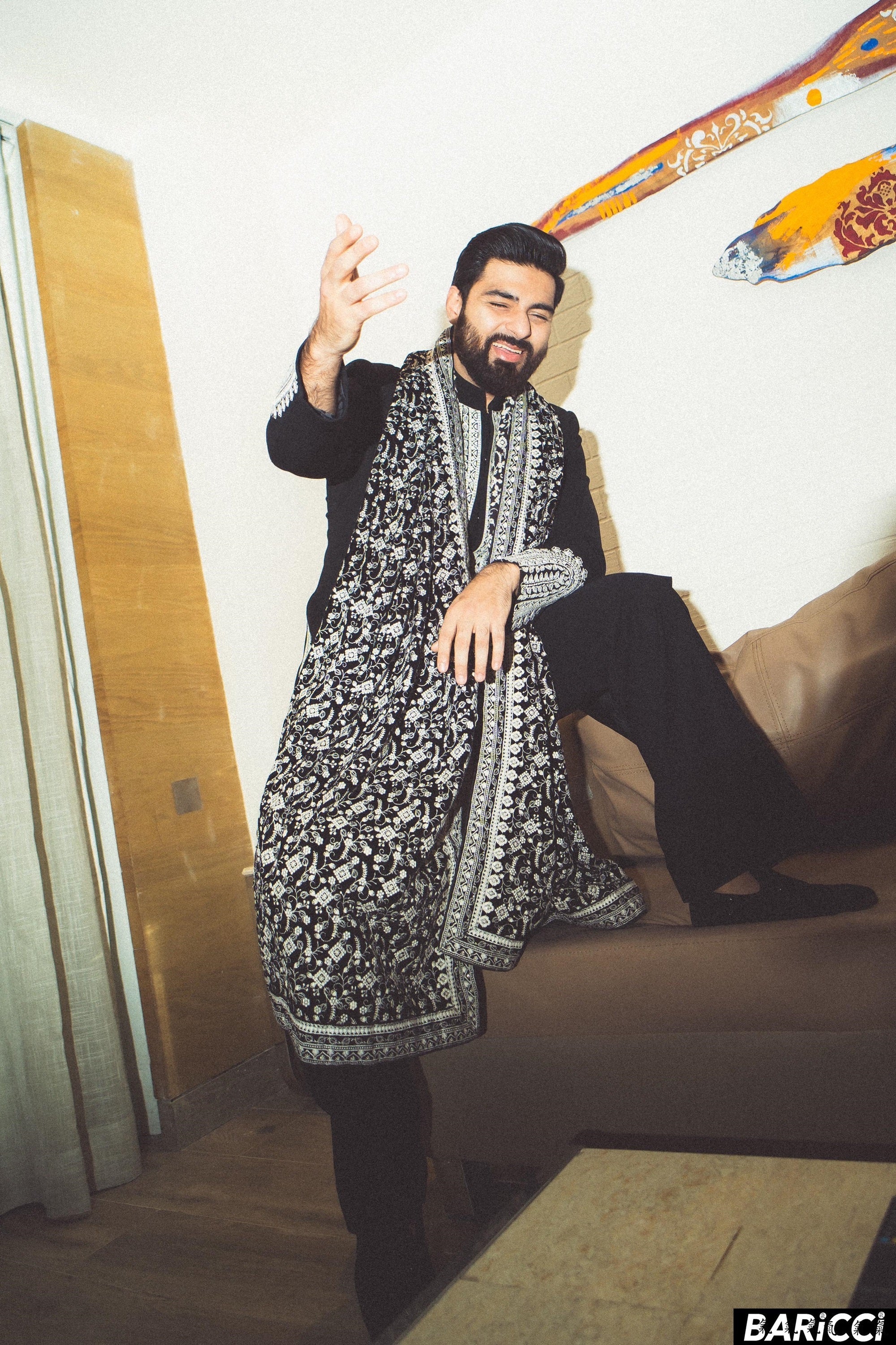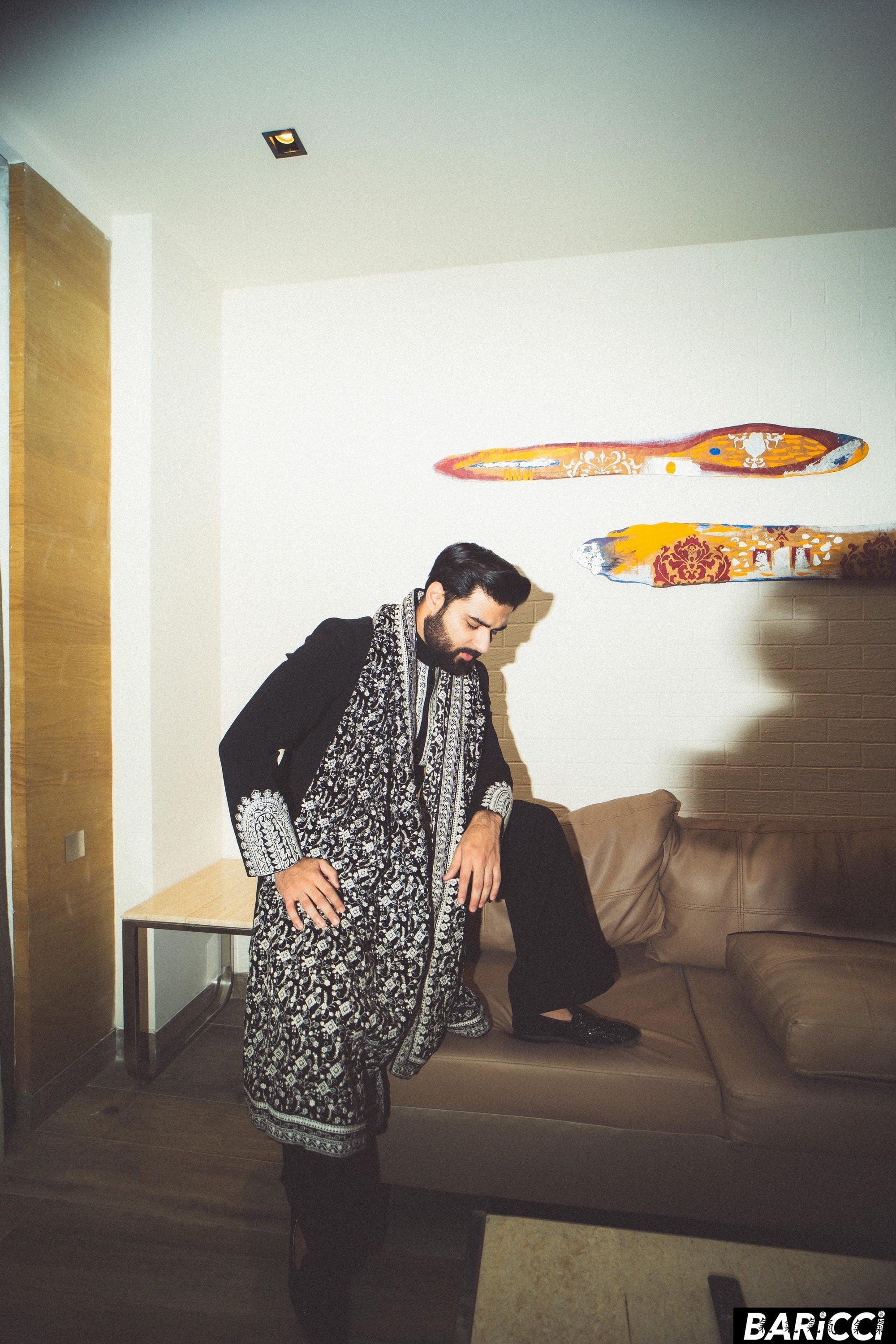 Make a statement with Bismil, our Black Embroidered Indo-Western for Men by Bharat Reshma. Featuring intricate hand embroidery and paired with a coordinated stole, this ensemble blends tradition with a contemporary edge. Perfect for Sangeet, Soofi nights, and grand festive celebrations, it’s tailored to keep you stylish and sophisticated.
