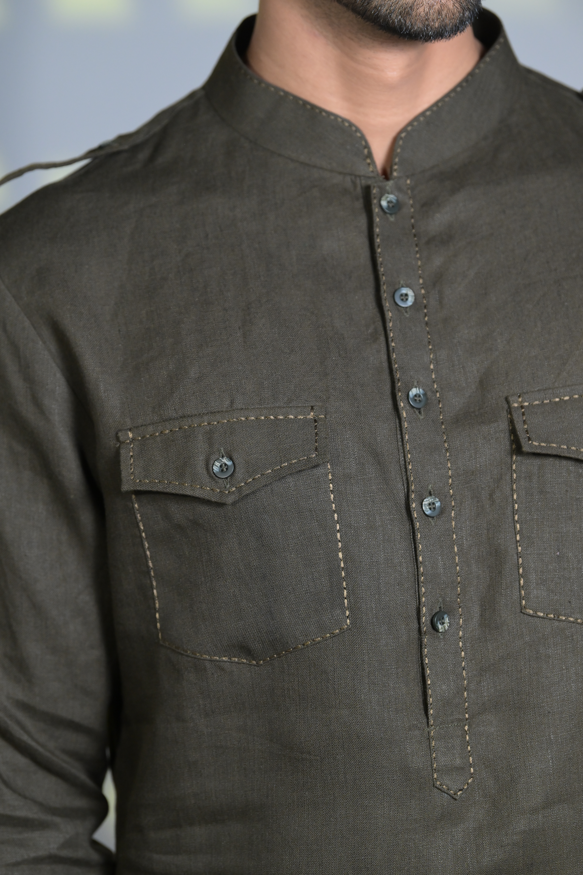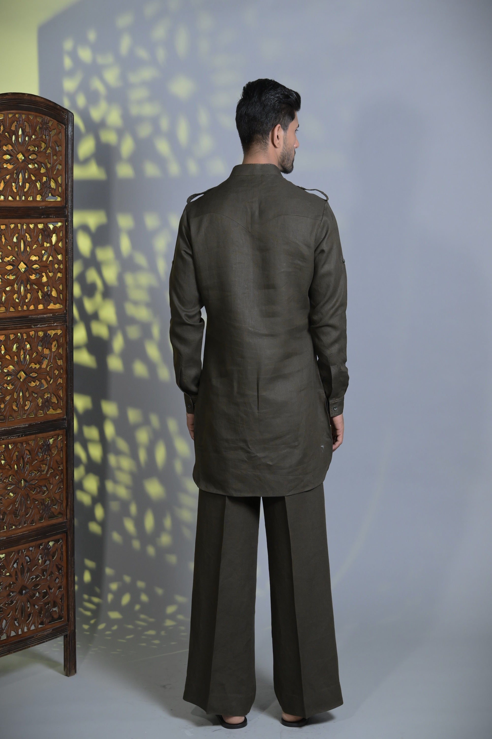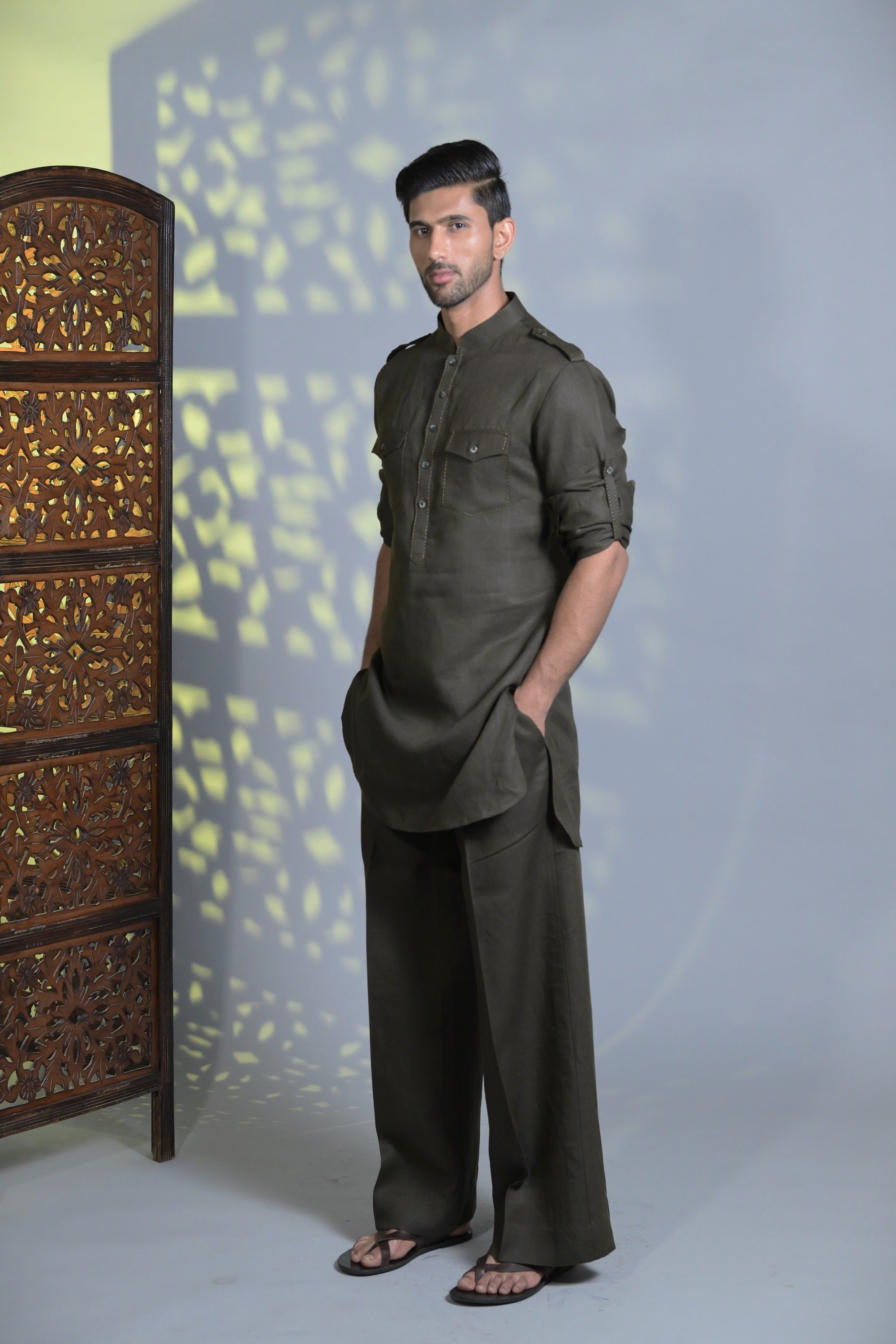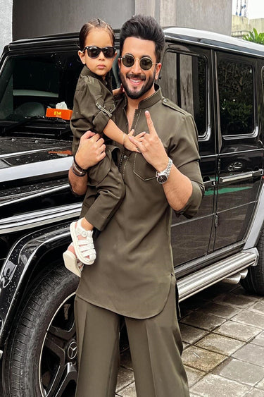 Deeraj Dhoopar In Our Classic Green Olive Pathani kurta set