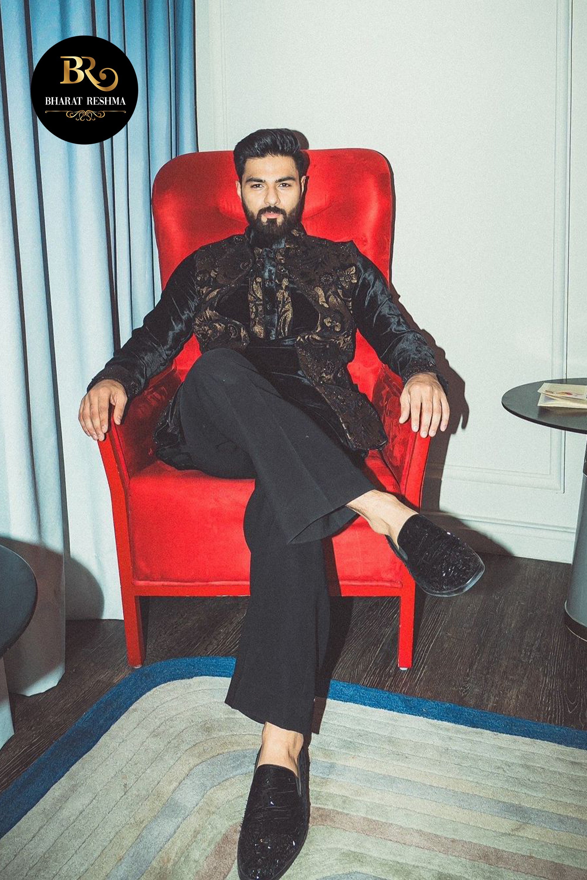 Bismil In Our Black Designer Velvet Kurta Set with Jacket - Bharat Reshma Bismil In Our Black Designer Velvet Kurta Set with Jacket - Bharat Reshma