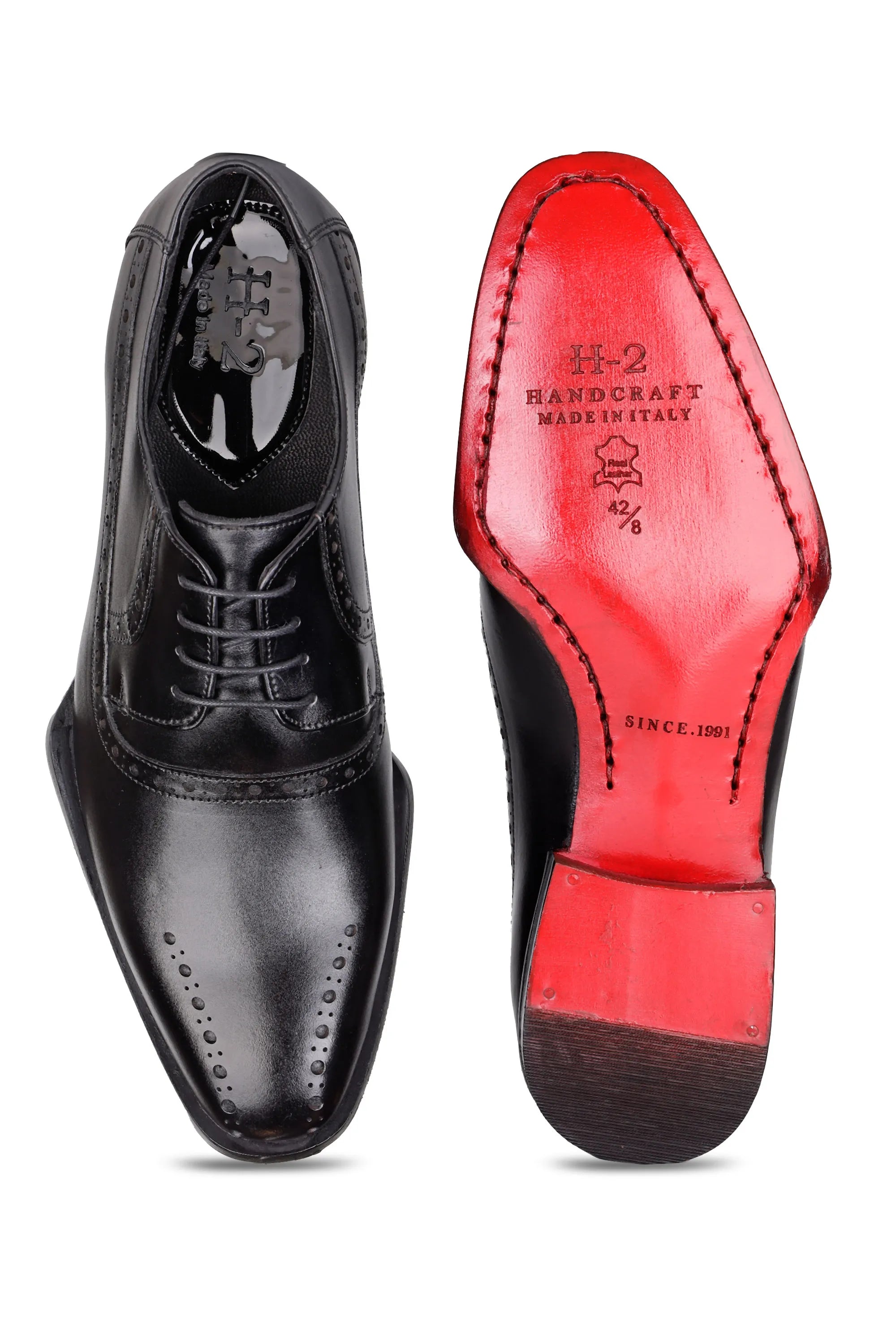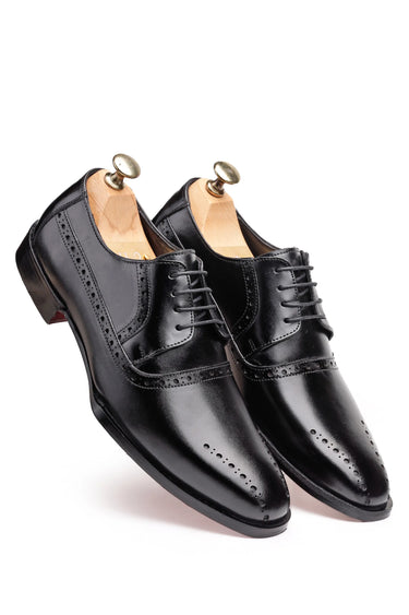 Elevate your formal look with these handcrafted Black Leather Brogue Derby. Made from genuine leather, they feature classic brogue perforations and a polished finish for a refined, timeless style.