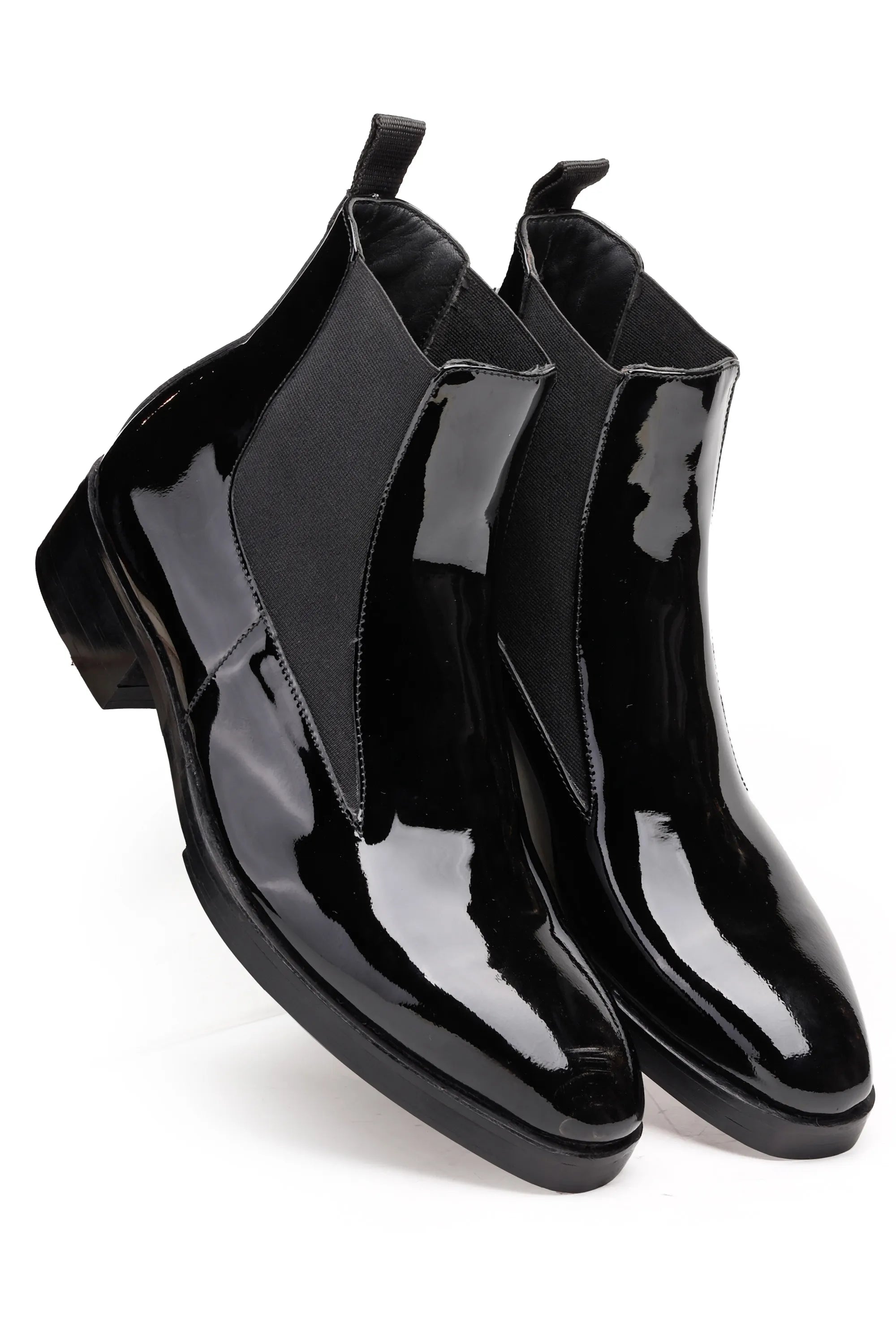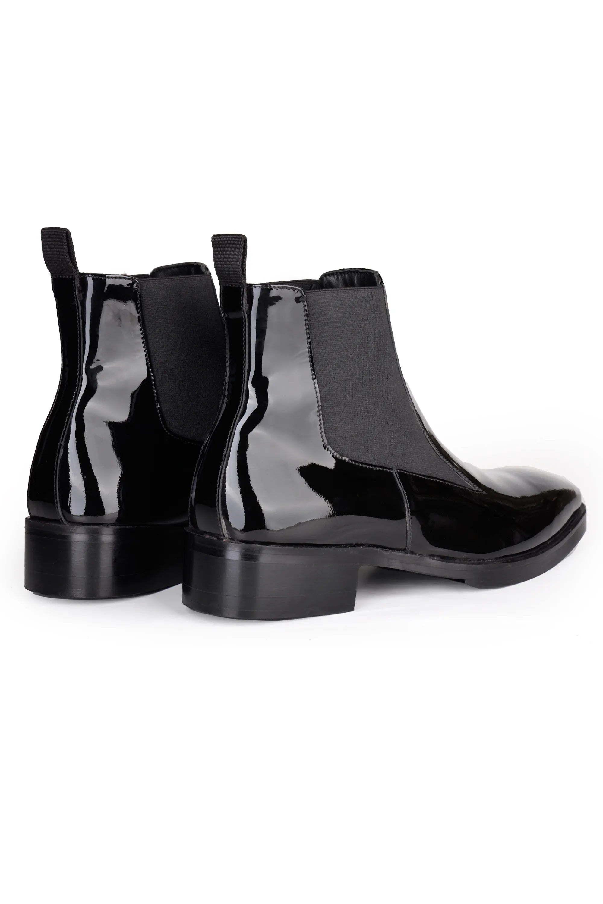 Black Patent Leather Chelsea Boots – Premium Gloss Finish