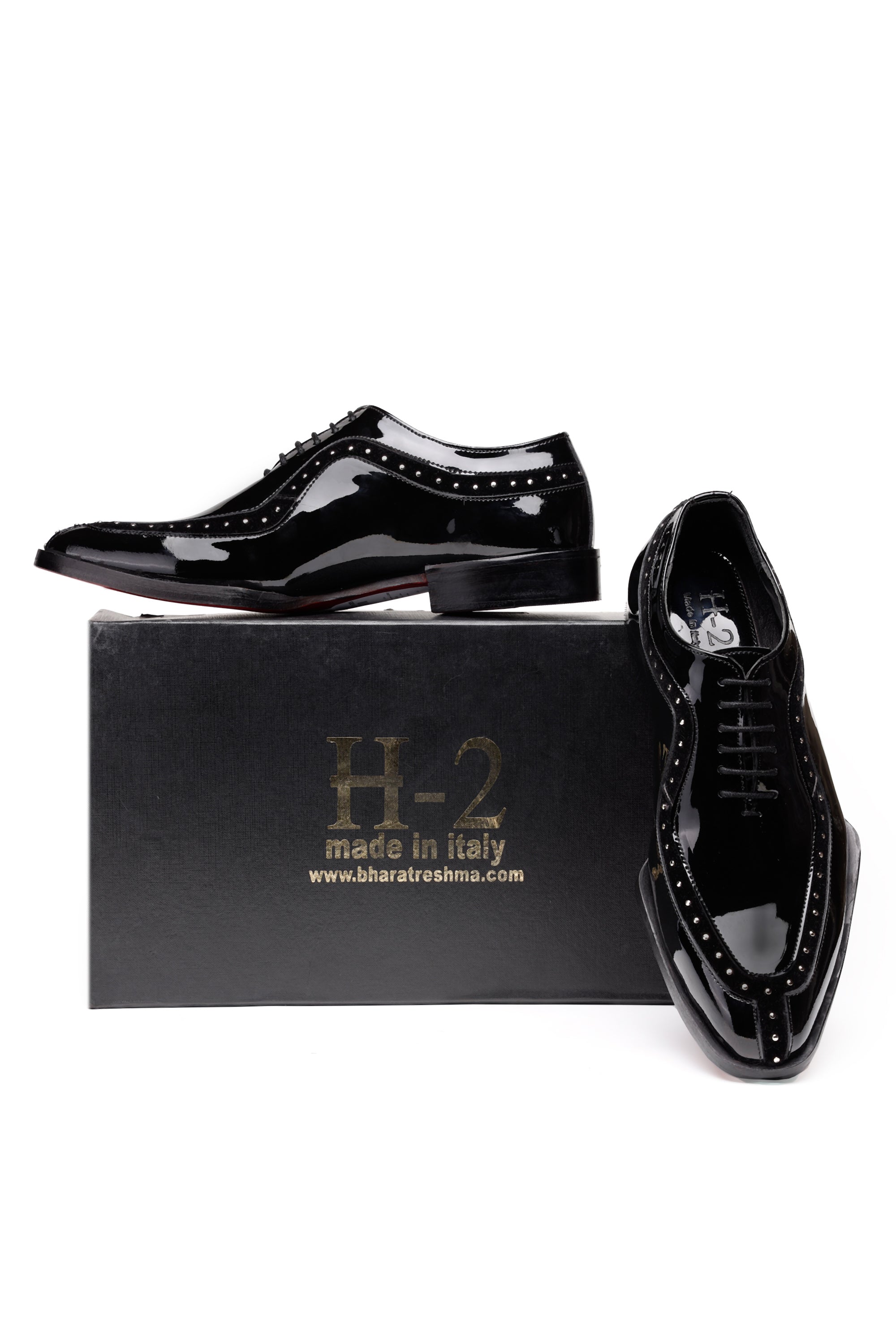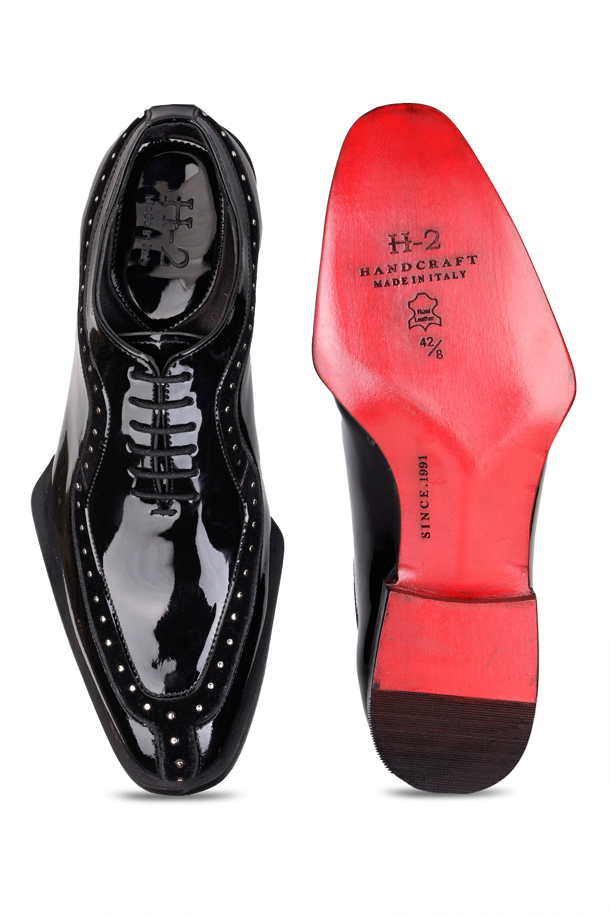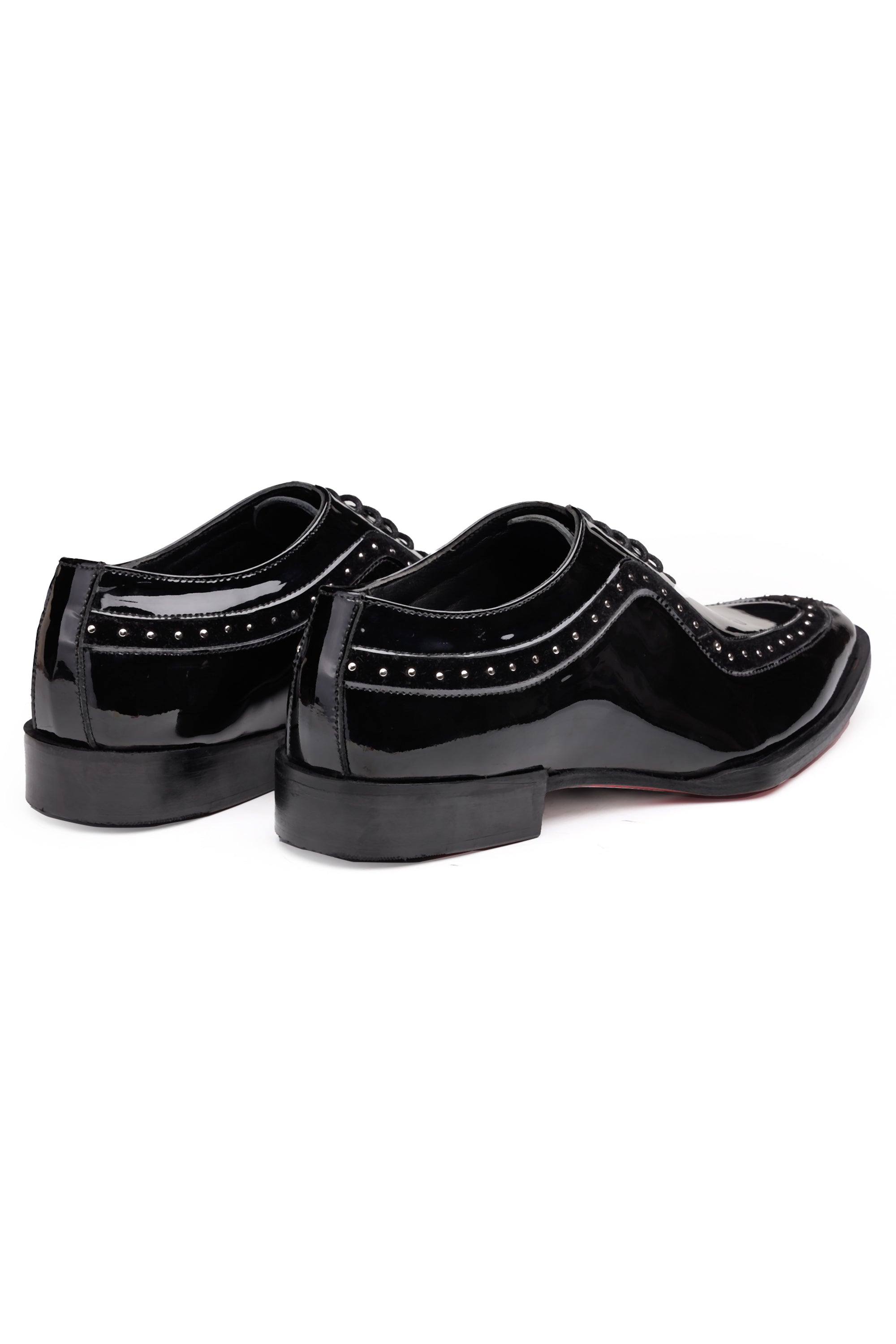 Black Patent Leather Oxford Shoes with Trim line & Stud Detailing