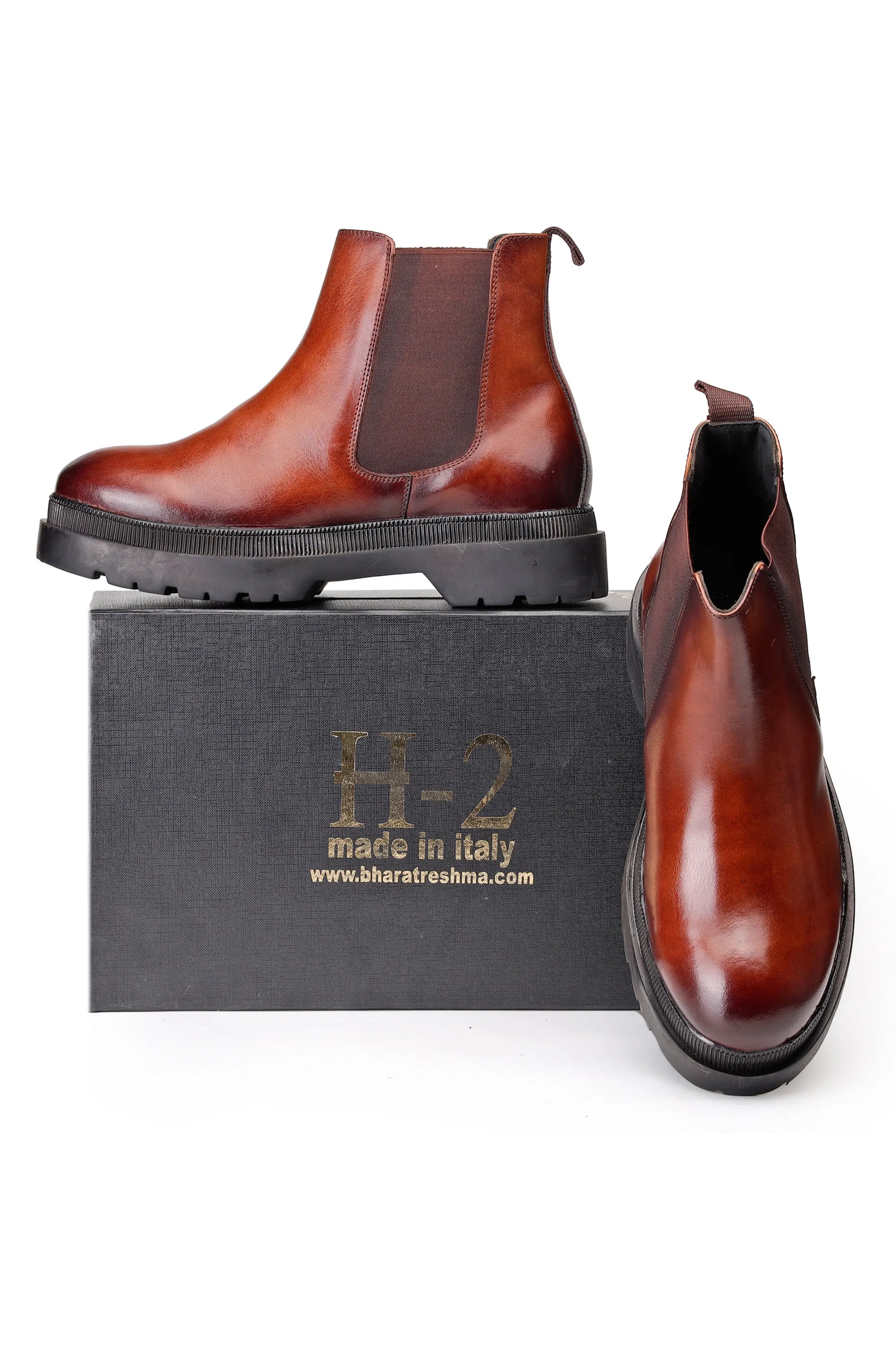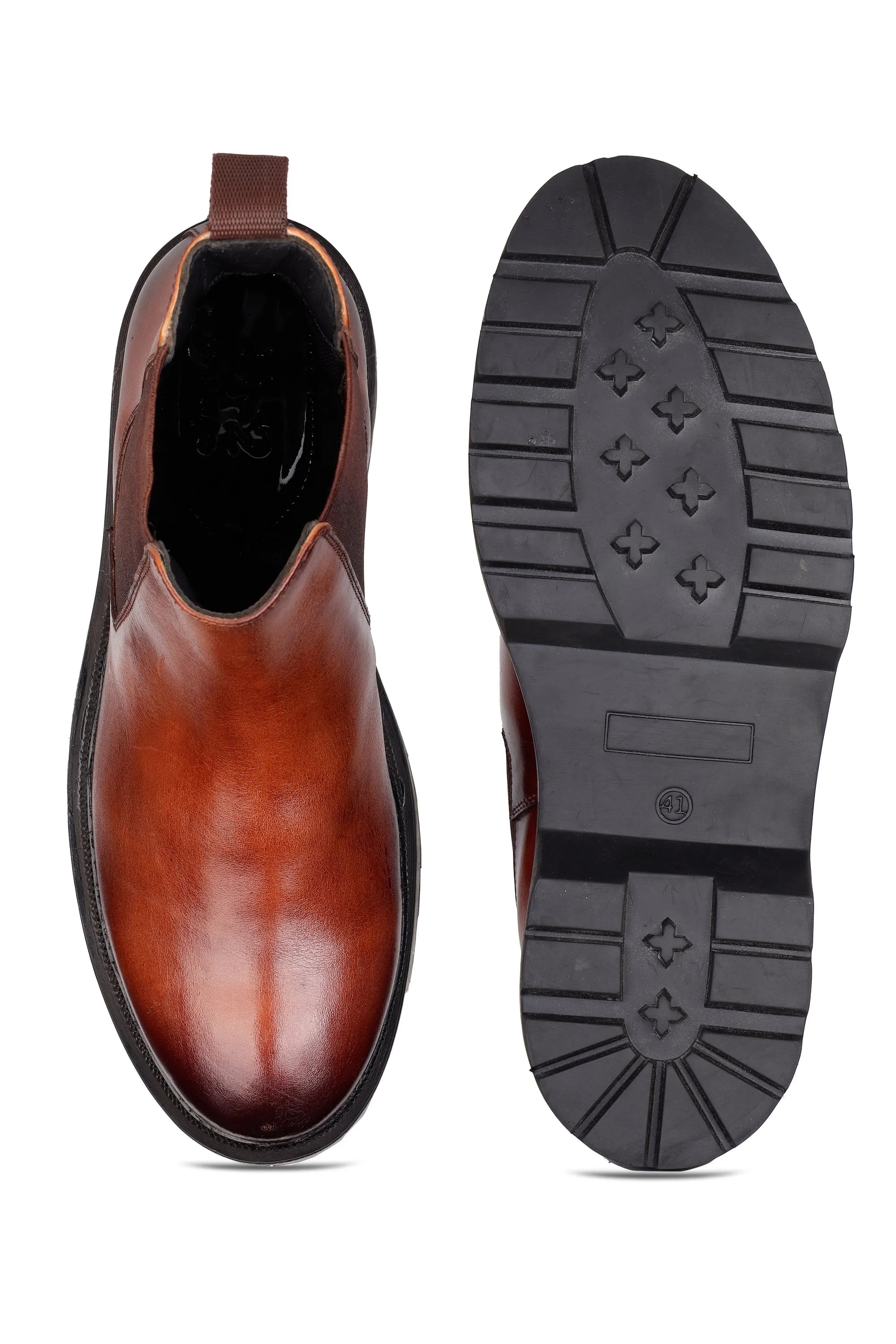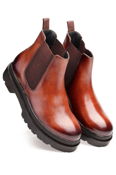 Brown Leather Chelsea Boots with Dual-Tone Finish