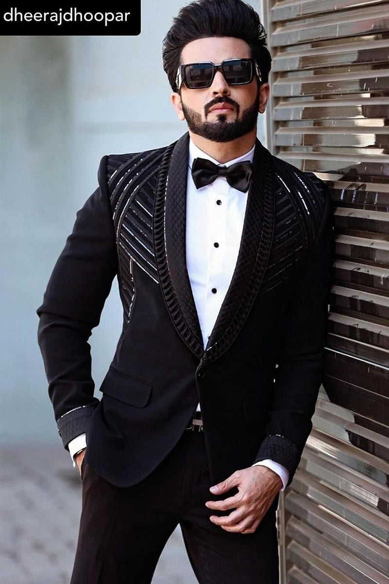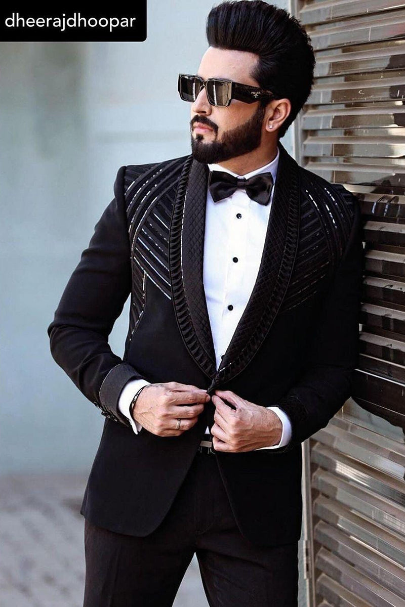 DHEERAJ DHOOPAR in Our Black Designer 2 Piece Suit for Men - Bharat Reshma DHEERAJ DHOOPAR in Our Black Designer 2 Piece Suit for Men - Bharat Reshma