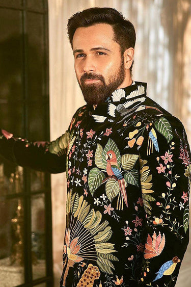 EMRAAN HASHMI in Our Black  indo-western embellished with hand embroidery - Bharat Reshma EMRAAN HASHMI in Our Black indo-western embellished with hand embroidery - Bharat Reshma