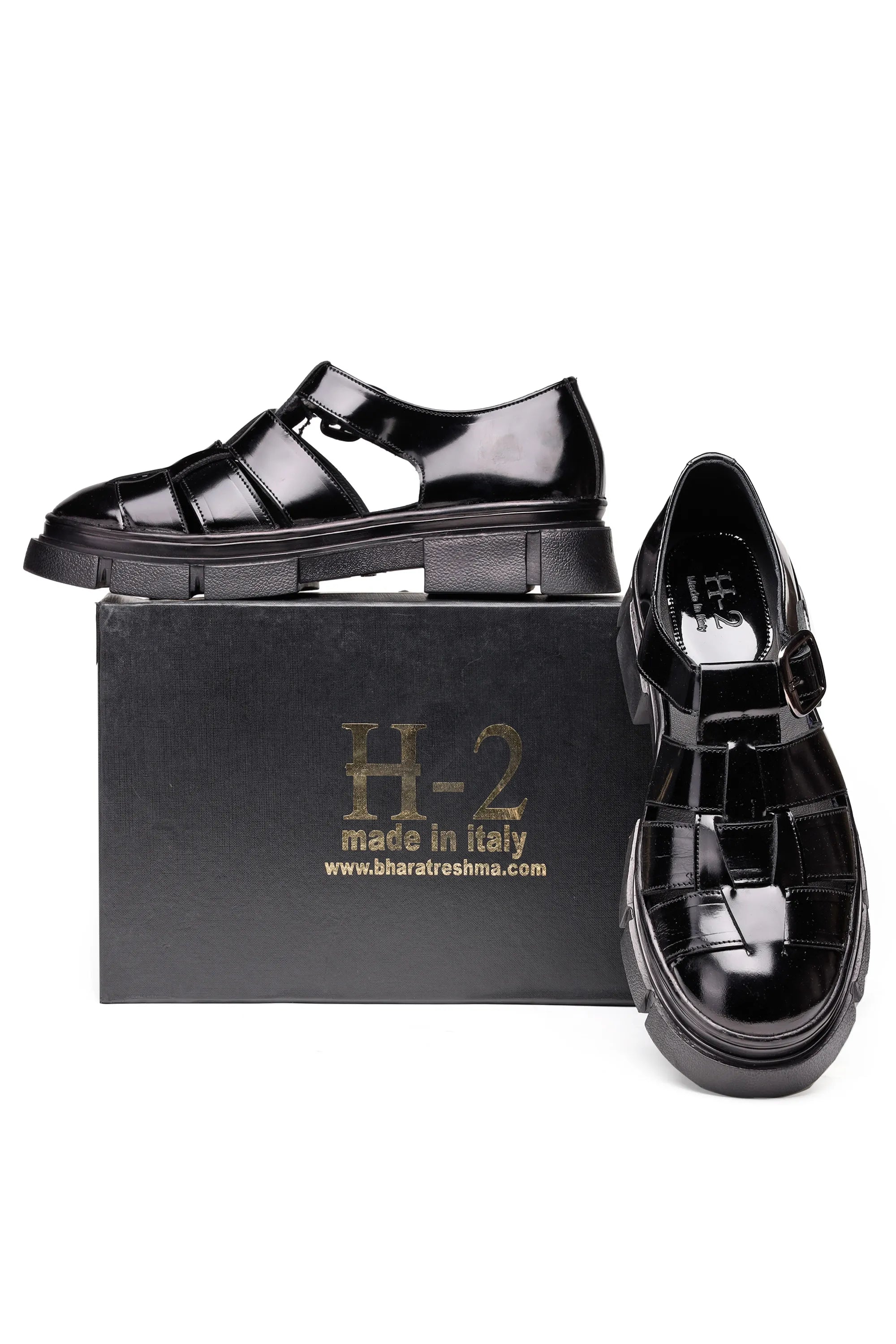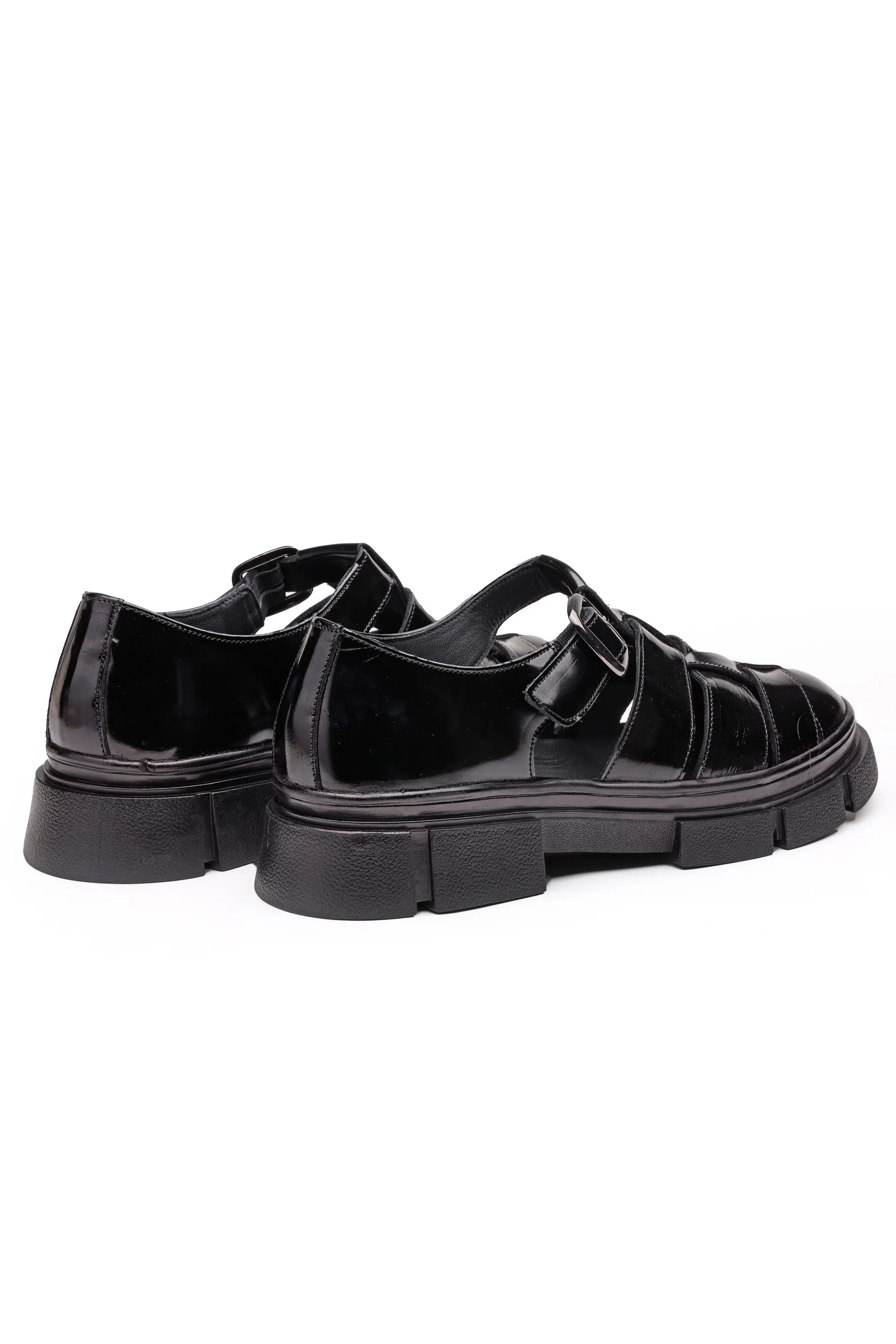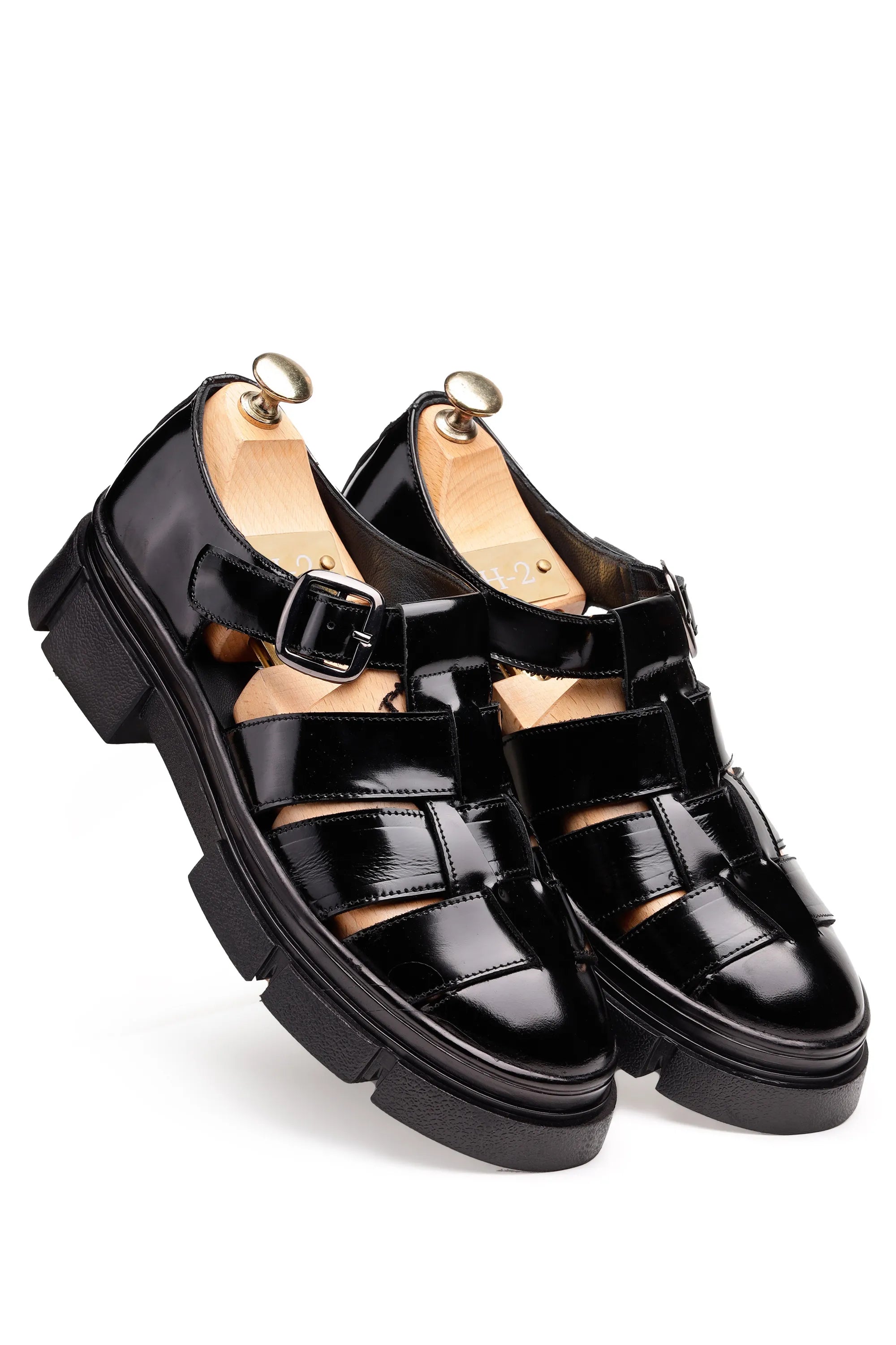 Hand-Polished Pure Leather Cage-Design Sandal Shoes