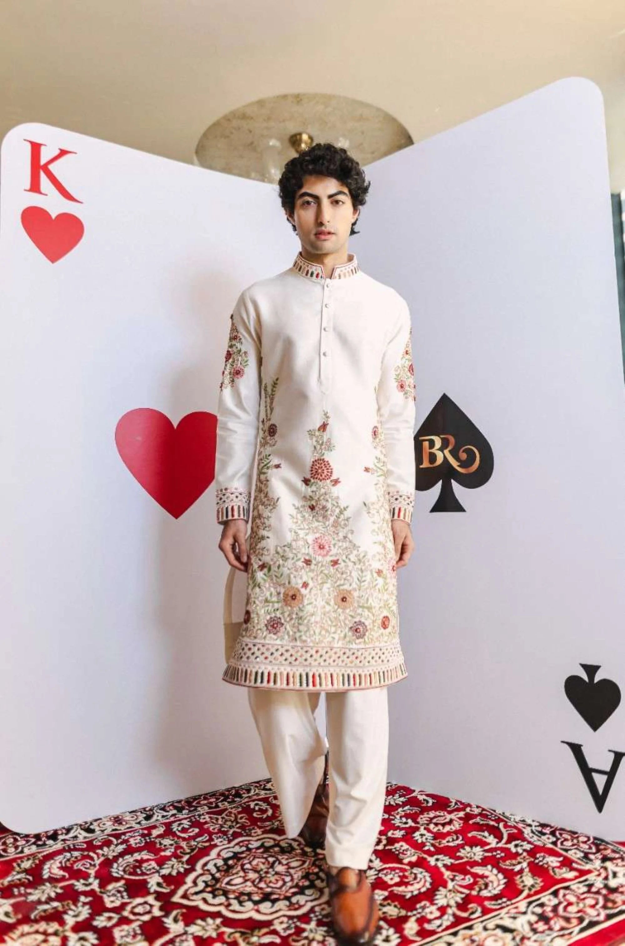 Celebrate festive occasions in style with the Ivory Harmony Kurta Set. This elegant ivory kurta is adorned with vibrant multi-color thread and delicate hand embroidery, creating a playful yet sophisticated look. Paired with crisp white pants, it offers a perfect blend of comfort and elegance, ideal for Diwali, weddings, and festive celebrations.
