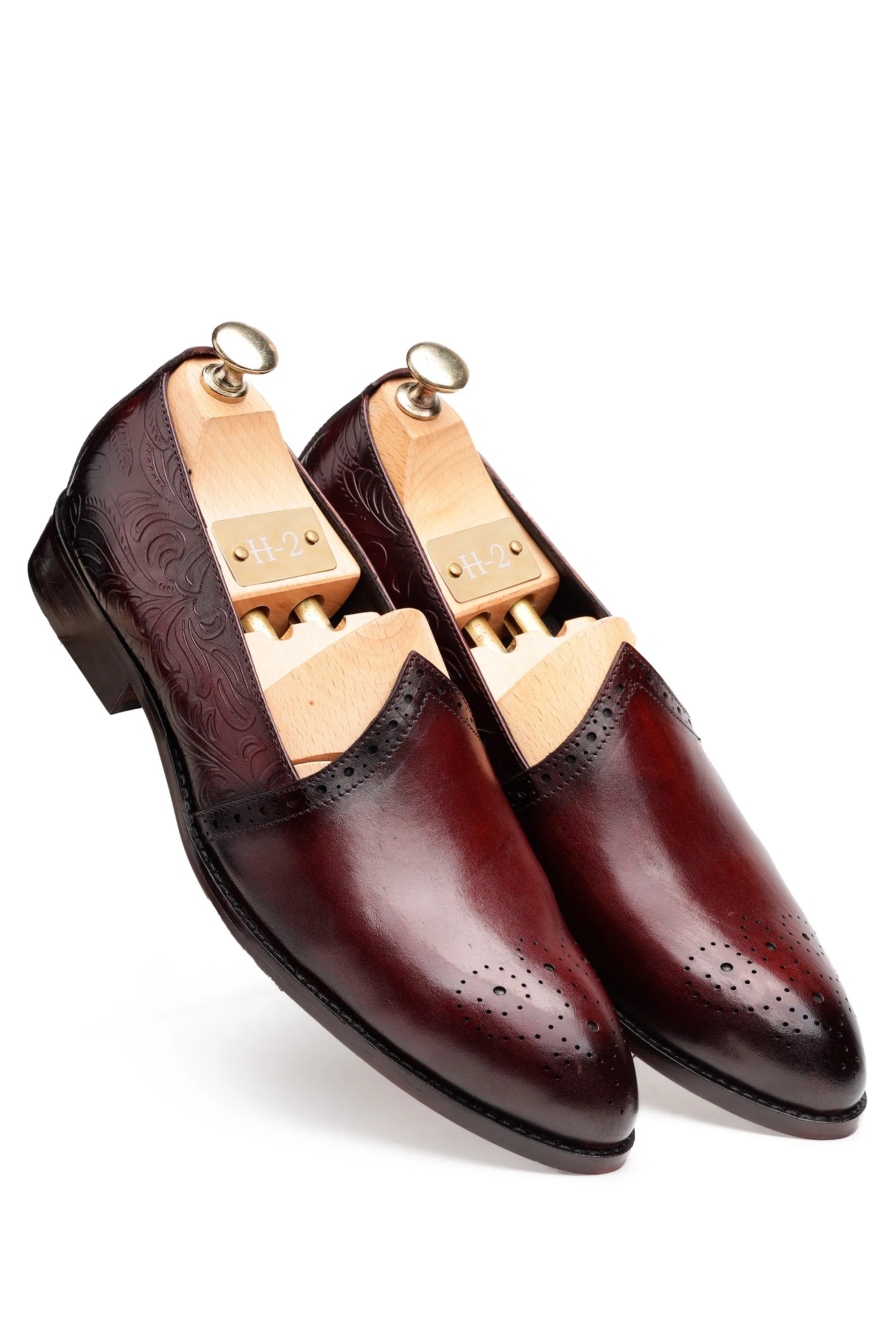 Leather Slip-On Loafers for Men with Elegant Brogue Detailing