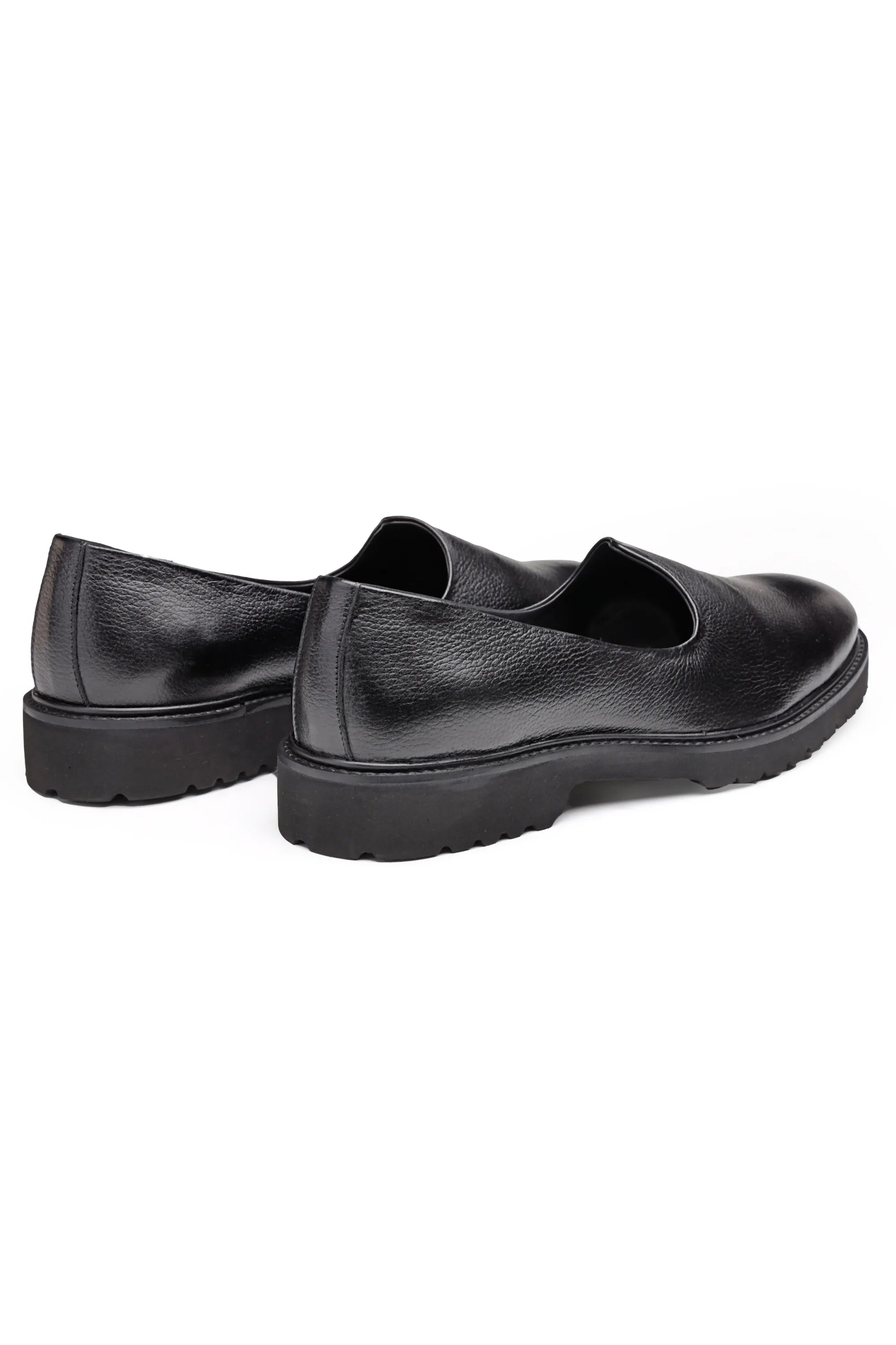 These premium slip-on loafers are made from 100% pure leather, offering a classy black finish and long-lasting comfort. Their easy slip-on design and durable sole make them ideal for office, business meetings, or formal events. The smooth texture and refined look add a stylish touch to any outfit while ensuring everyday comfort and durability.
