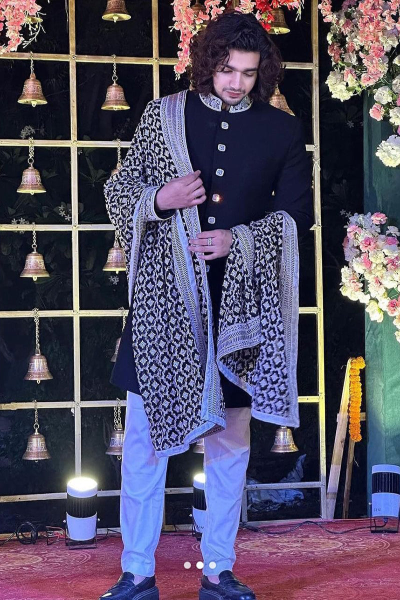 VISHAL in Our black indo western with embroidered neckline - Bharat Reshma VISHAL in Our black indo western with embroidered neckline - Bharat Reshma